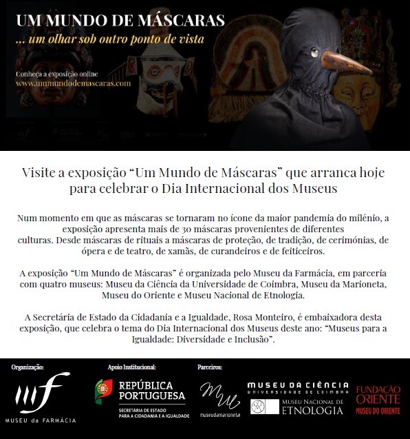Organizada pelo Museu da Farmácia em parceria com quatro museus – Museu da Ciência da Universidade de Coimbra, Museu da Marioneta, Museu do Oriente e Museu Nacional de Etnologia –, esta exposição online é inaugurada a 18 de maio para celebrar o Dia Internacional dos Museus 2020.