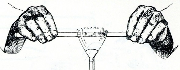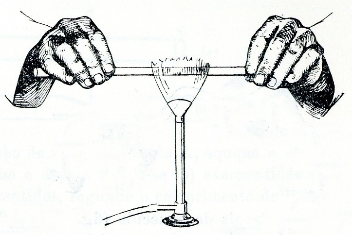 Para dobrar um tubo de vidro utilizamos um bico de Bunsen ao qual foi adaptado no bocal uma peça metálica em forma de leque, que permite uma chama delgada com uma grande superfície lateral. Durante o processo de aquecimento do tubo de vidro, quando a cor da chama fica amarelo intenso, indica a presença de vapor de sódio (que entra na composição do vidro) e que a temperatura já é muito elevada, sendo fácil a dobragem do tubo de vidro sem grande esforço.