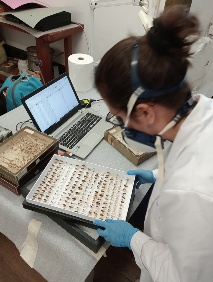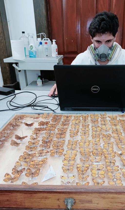 Em relação às borboletas foram já inventariados mais de 3000 espécimes e quase todos identificados até à espécie com a ajuda dos especialistas Eduardo Marabuto e Tatiana Moreira. Ficando a faltar cerca de 1500 borboletas que pretendemos inventariar até ao final deste mês. A “Coleção Nacional” foi indexada, na sua maioria, pela curadora da Zoologia, Cristina Rufino e por um voluntário, Daniel Ribeiro, as coleções “Rosário Pires” de 1980’s e “Pedagógica”, exemplares coletados entre 1987 e 1990 fizeram parte do plano de trabalho de 2 estágios de verão em 2024, do Diogo Vital da Universidade de Aveiro e da Catarina Moniz da Universidade de Coimbra. E, finalmente a coleção do “Colégio de S. Fiel – Cândido de Azevedo Mendes e Joaquim da Silva Tavares”, que está a ser inventariada pela curadora da Zoologia e alunos de Biologia: Ana Costa, Lara Ribeiro, Daniel Laranjeira, Inês Carvalho e Maria Silva. Esta coleção contém, também, exemplares de outros coletores como: Manuel Paulino de Oliveira, Duquesa de Palmela, António Augusto Carvalho Monteiro, Wenceslau de Sousa Pereira Lima, do final do séc. XIX e Anthero Frederico de Seabra, Ernest Matthes, João Miguel Ladeiro, António Paulo, Armando Alves dos Santos, Eusébio Tamagnini, D. F. Noronha, até meados do século XX.
