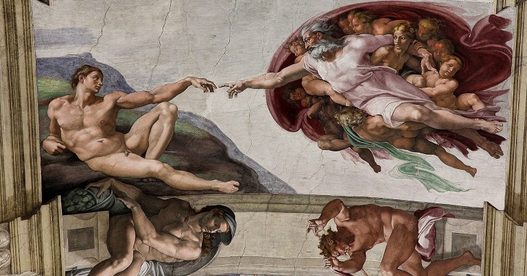 A Criação de Adão, fresco pintado por Michelangelo (1475-1564), Tecto da Capela Sistina, Roma, Vatic