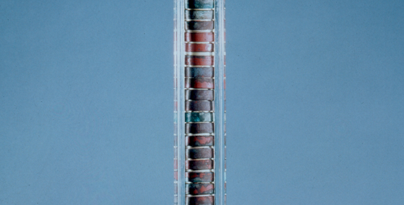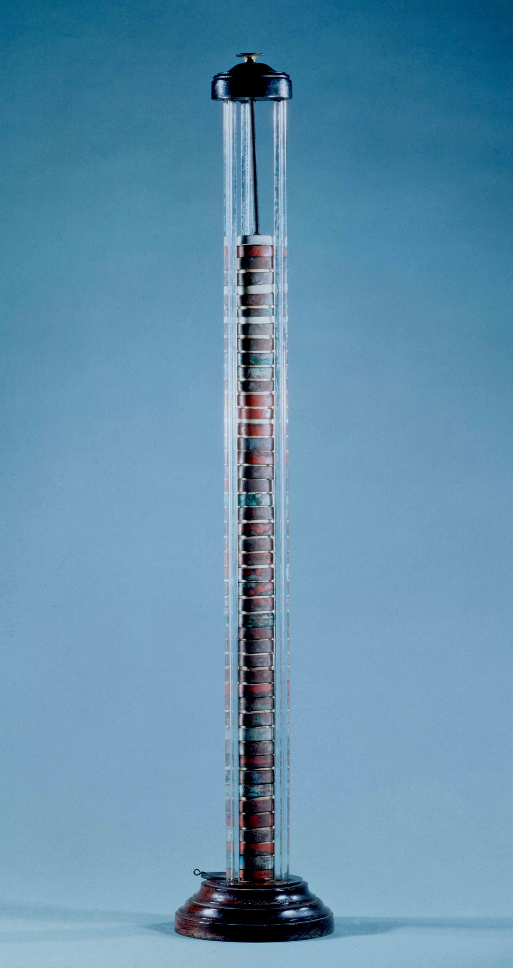 A pilha em coluna, de que esta é um exemplo, é o primeiro tipo de pilha concebido por Volta. O seu nome deriva de ser constituída pela sobreposição alternada de pares de discos de cobre e zinco, sendo cada par separado do seguinte por uma rodela, de tecido ou de cartão, ou ainda porcelana porosa, originalmente embebida em água. Verificou-se posteriormente que os efeitos eram mais pronunciados se, em vez de água, fosse usada uma solução ácida ou alcalina, que a tornava melhor condutora.