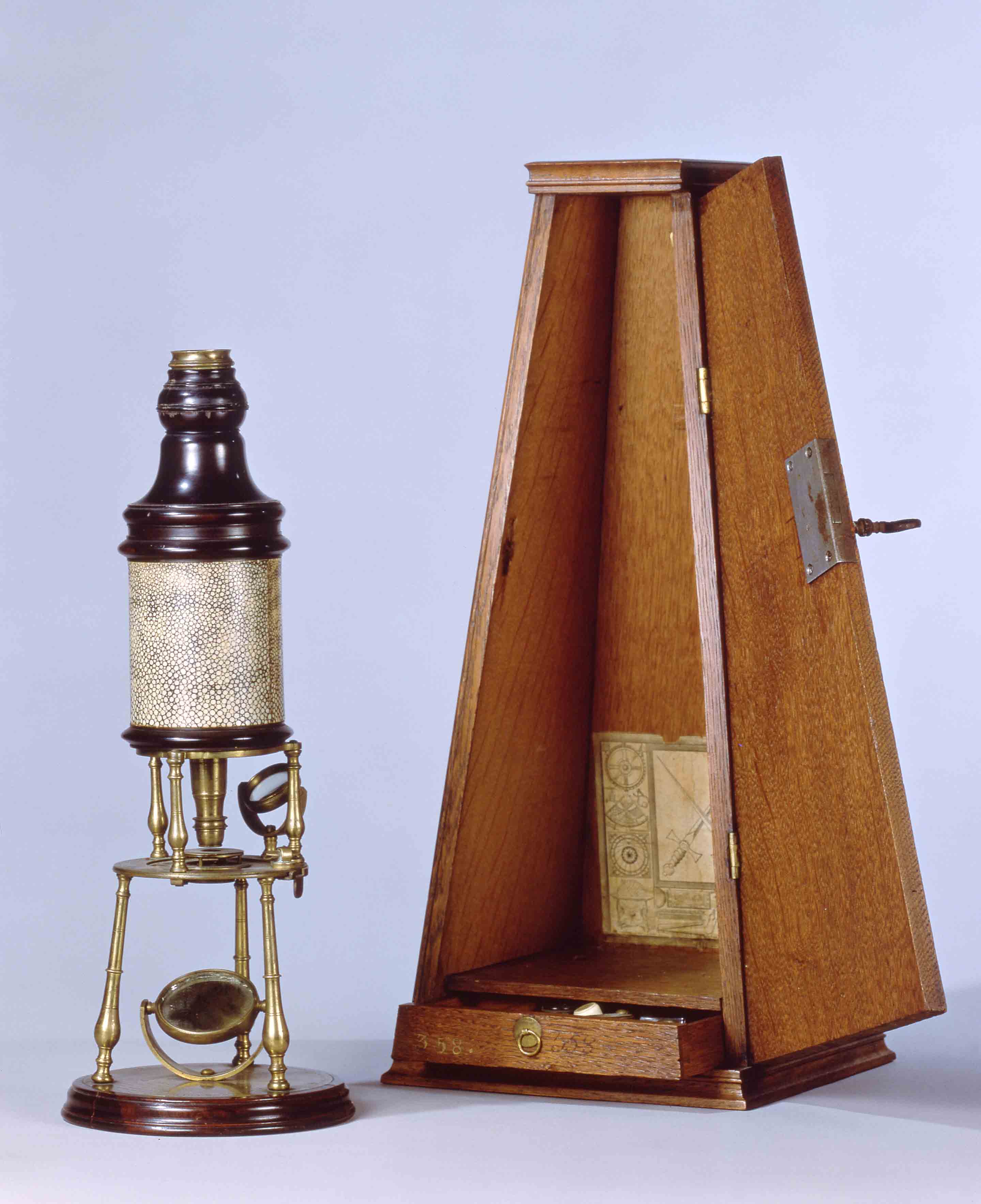Microscópio composto oferecido à Universidade de Coimbra em 1731, por Jacob de Castro Sarmento, um médico judeu, português, à data residente em Londres. A oferta destinava-se aos professores de Medicina de Coimbra para as suas observações botânicas e anatómicas. Foi posteriormente incluído no Gabinete de Física, não sabemos exactamente em que data. Sabe-se apenas que estava já incluído no Index Instrumentorum, catálogo datado de 1788, mas escrito, muito provavelmente, em 1782.