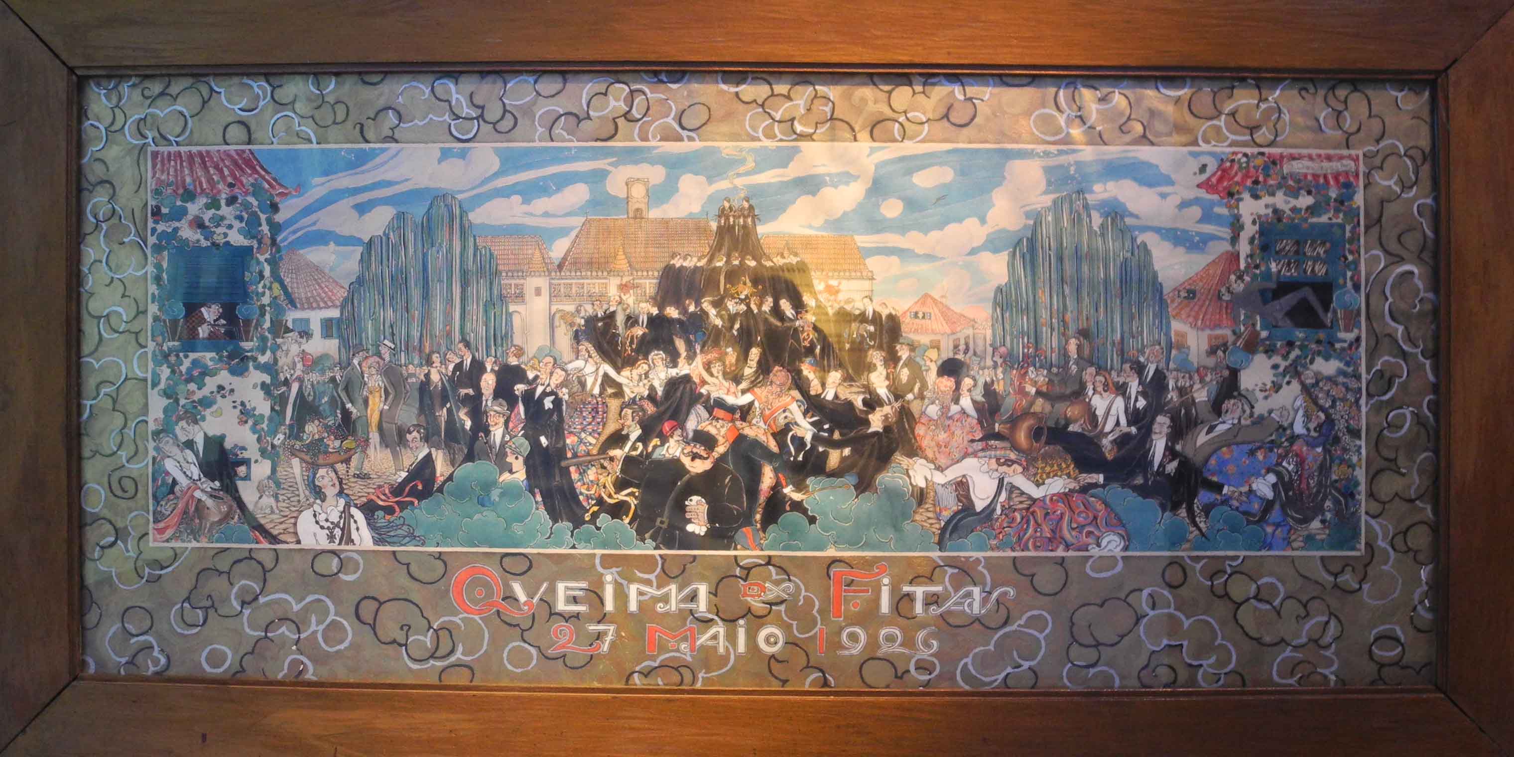 No último mês do ano letivo 2022/2023, assinalamos a época de entrada de férias com a gravura comemorativa da Queima das Fitas de 27 de maio de 1926. Obra executada por Diogo Francisco de Almeida de Azevedo e Vasconcelos, estudante de Direito e exímio desenhador, o 3º Marquês de Reriz deixou-nos uma peça notável que documenta o espírito académico e o contexto social da época, sob a influência artística europeia da Arte Nova.