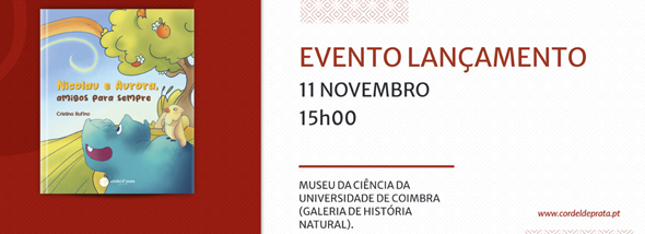 A apresentação do Livro "Nicolau e Aurora, amigos para sempre", da autoria de Cristina Rufino, decorrerá na Galeria de Zoologia do Museu da Ciência da Universidade de Coimbra, no próximo dia 11 de novembro, pelas 15h00. Para além da autora, contamos com a presença da Filipa Queiroz, Directora da revista Coimbra Coolectiva e ainda da Helena Faria, Fundadora da Camaleão, Associação Cultural.