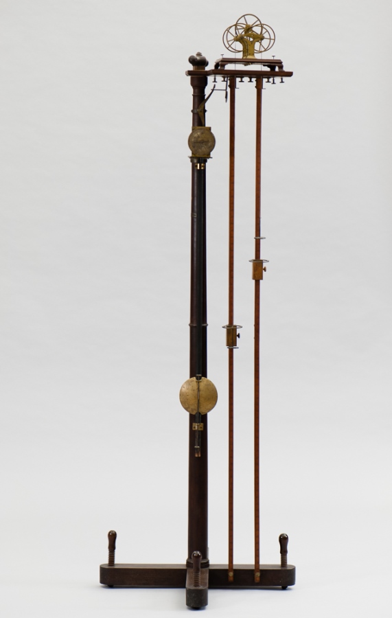 Este instrumento, cujo sistema foi idealizado por George Atwood, é um dos primeiros exemplares desta máquina. Pode ter sido construído por Edward Nairne ou por George Adams (autor da máquina que foi enviada a Volta), construtores ingleses com os quais por J. J. Magalhães colaborou.