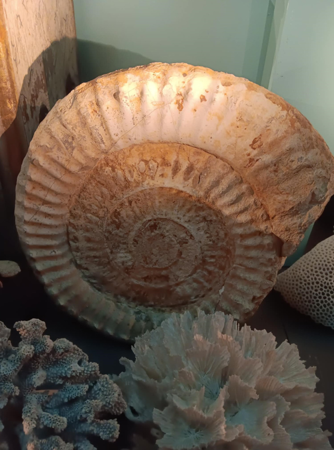 O espécime, cravado na rocha, que se encontra hoje entre as vitrinas do Gabinete de Curiosidades do Museu da Ciência, possui uma forma que nos faz lembrar distintos animais, um caracol, um búzio, um caramujo ou até mesmo um náutilo. Assemelha-se a este na sua estrutura e geometria, contudo, trata-se de um Apoderoceras, um molusco da família das amonites.