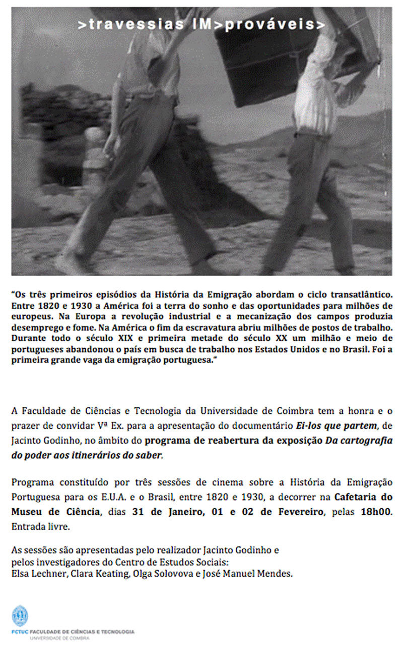 Exibição do documentário EI-LOS QUE PARTEM, com apresentação do realizador Jacinto Godinho.