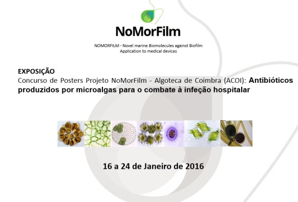 Concurso de Posters Projeto NoMorFilm - Algoteca de Coimbra (ACOI): Antibióticos produzidos por microalgas para o combate à infeção hospitalar