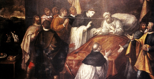 S. Teotónio (um dos fundadores do Mosteiro de Sta Cruz) a curar o primeiro rei de Portugal